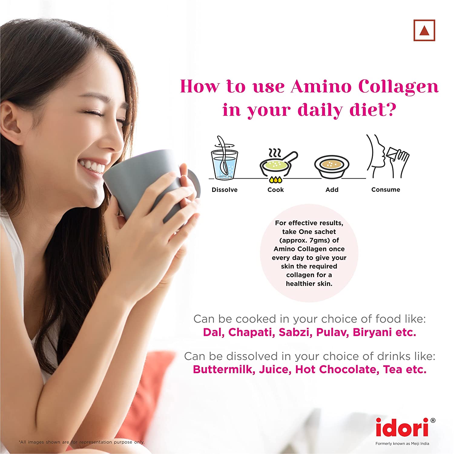 TO USE: Add 1 sachet (7g) of Amino Collagen Powder in any food or drink