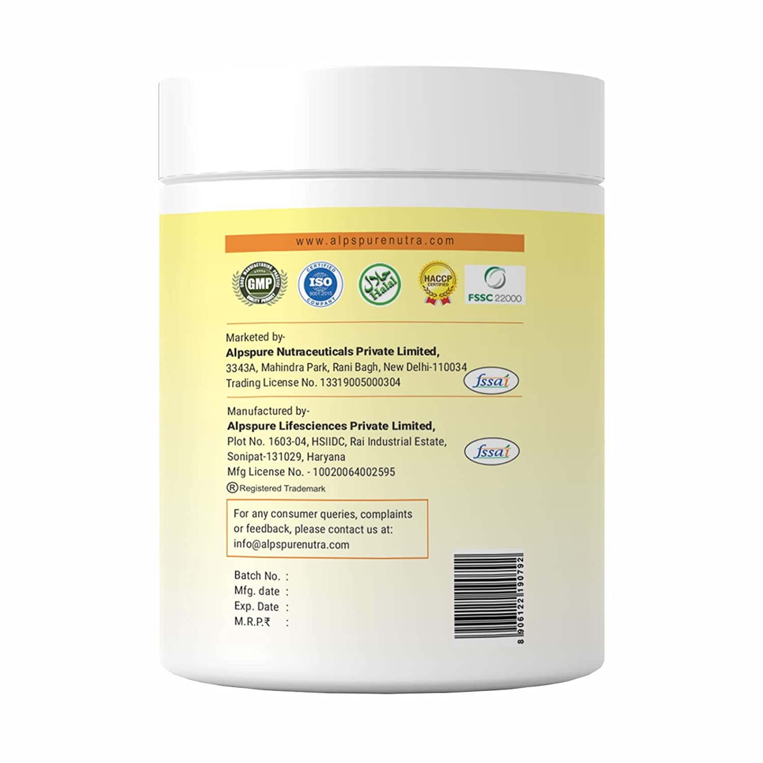 - Package Content: 1 jar of Alpspure Nutra Marine Collagen Supplement : Item Form:-Powder : Quantity: 300 gm Flavour :-Mango