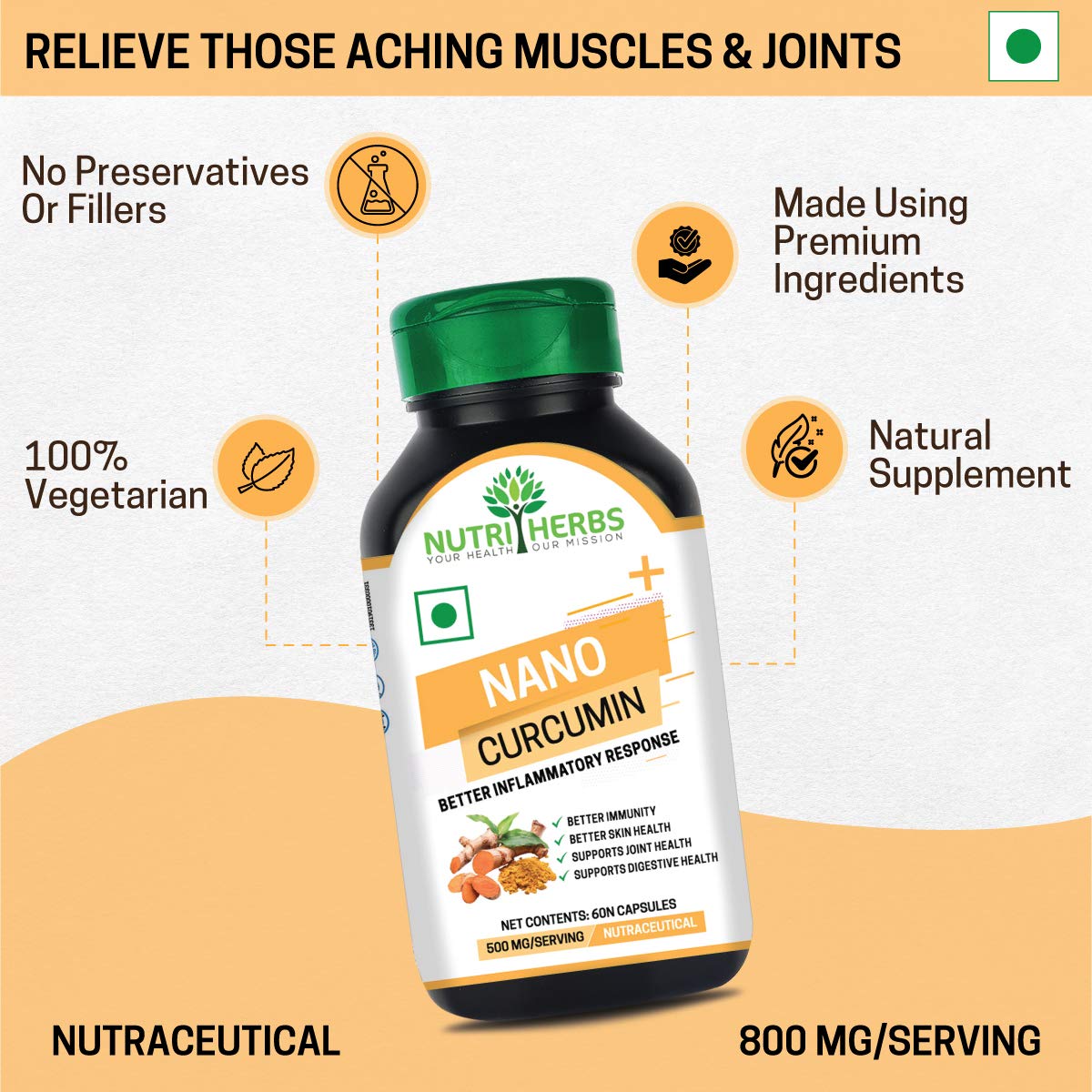 Nutriherbs Nano Curcumin capsules are made in India & free from