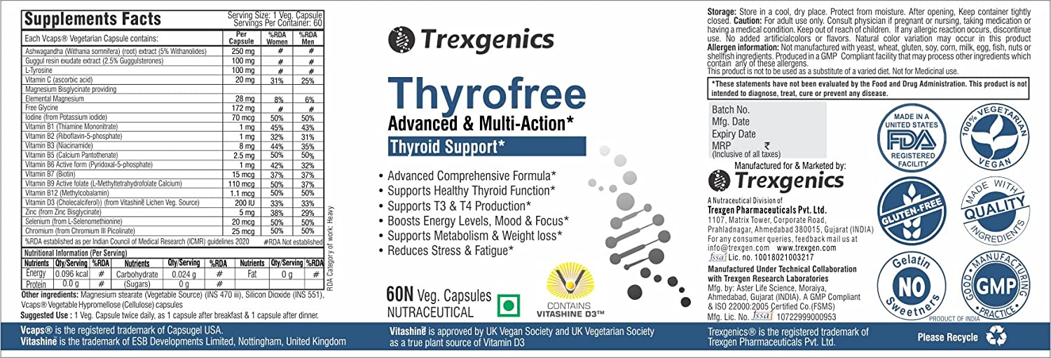 | Special Ingredients | Ashwagandha, L-Tyrosine, Commiphora mukul, B-Complex, Selenium, Zinc |