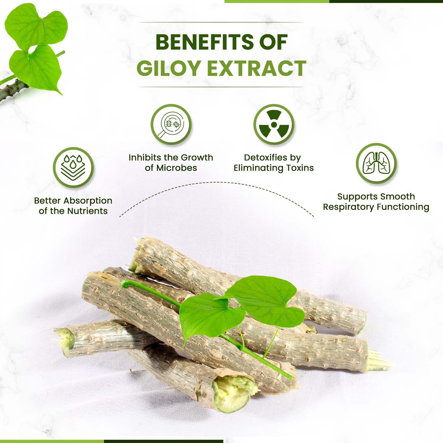 BOOSTS IMMUNITY: Giloy is an ayurvedic herb that boosts immunity. Its
