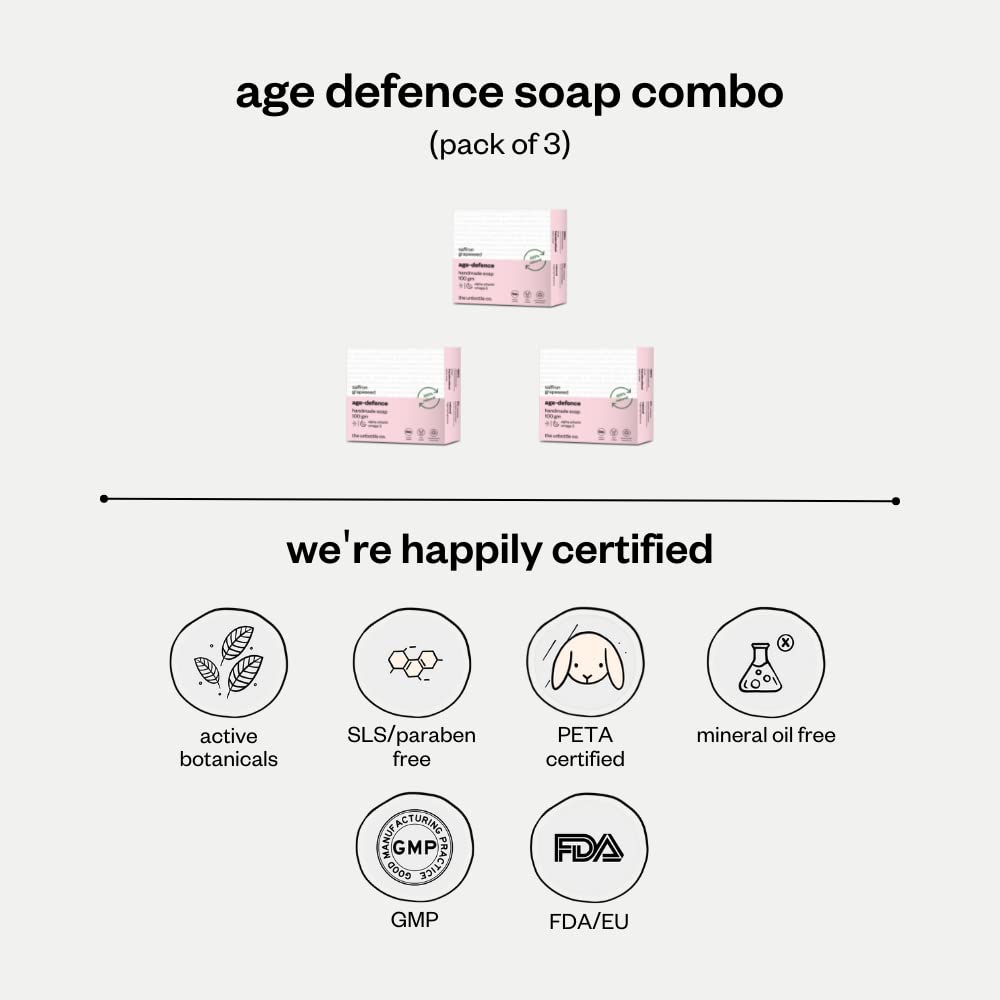 Age Defence Handmade Soap. Anti Aging Soap for Fine Lines & Wrinkles. Organic Soap Enriched with Green Tea & Saffron. 100% Natural Bath Soap to Boost Collagen 300g
