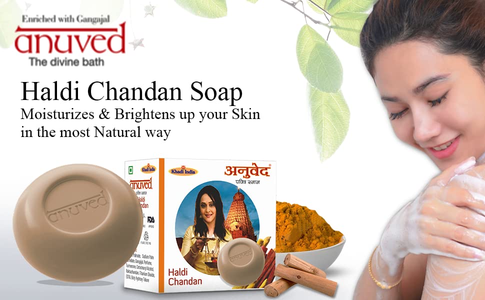 Herbal Haldi Chandan Authentic Bathing Soap, Pack Of 6, 125G Each, Contains Turmeric & Sandalwood Oil Enriched With Rishikesh Gangajal For Skin Brightening, Natural Moisturizer & Anti Oxidant