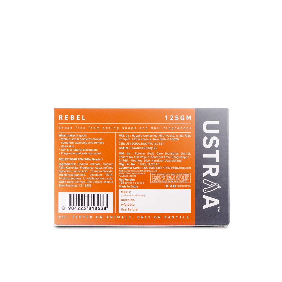 • Ustraa's Rebel Cologne Soap comes with the goodness of walnut granules for deep cleaning and a mild exfoliation while bathing.