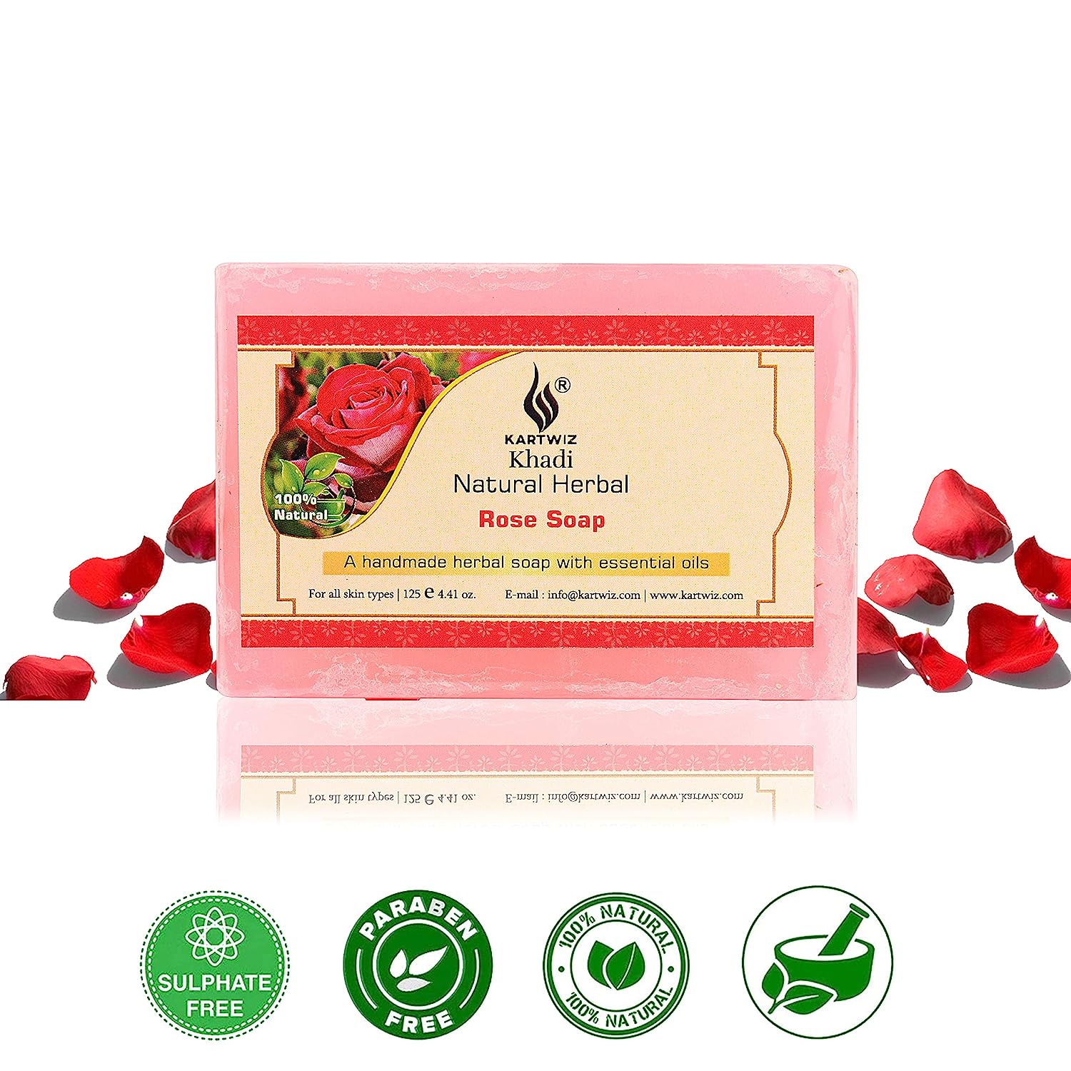 Khadi Rose Water Soap 125 gm (Pack of 3) by Parvati Gramodyog Herbal Products - Made in India