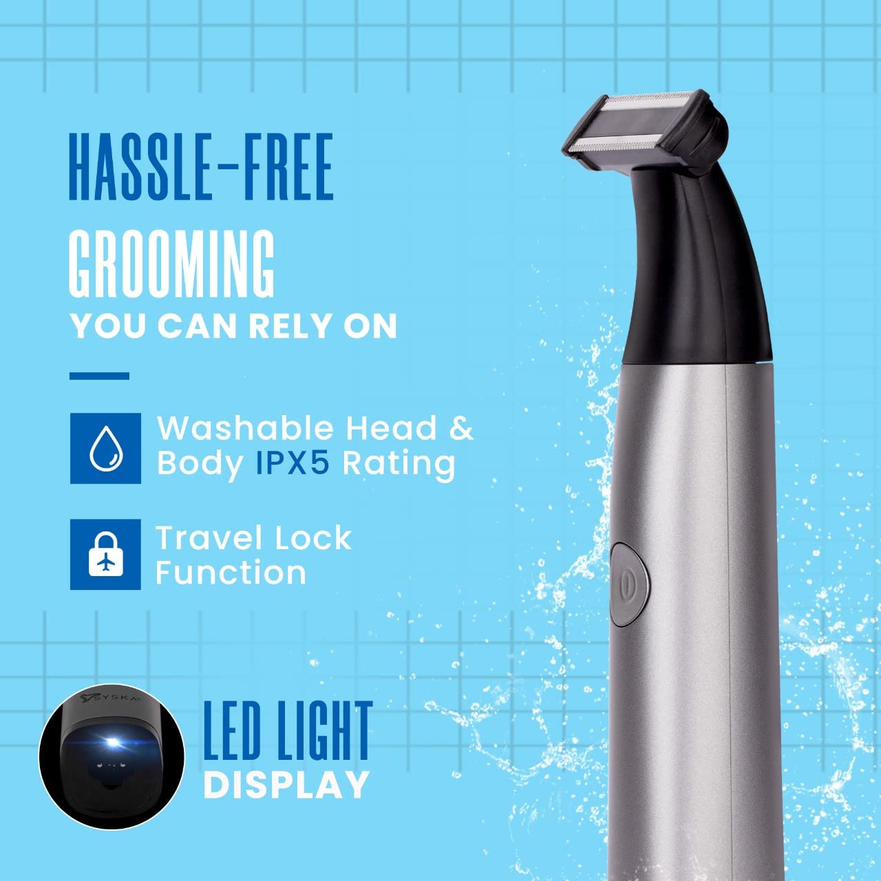 Syska UT1100 Uniblade Cordless Trimmer, With Dual Bi-Directional Blades, Flexible Auto Adapt Head, IPX5 Water Resistance, 75 min Run Time, Quick Charging, Travel Lock Function (Metalic Grey) with 2 year warranty