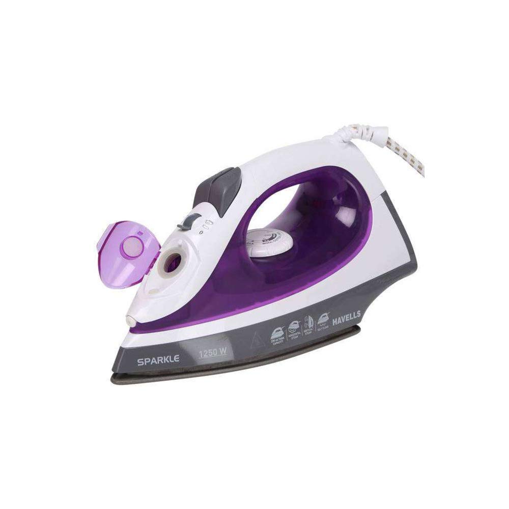 Havells Sparkle 1250-Watt Steam Iron with Powerfull Steam Spay | Horizontal/Vertical Steaming | Self Cleaning Function | 230ML Tank Capacity | 2 Years Warranty - White/Purple
