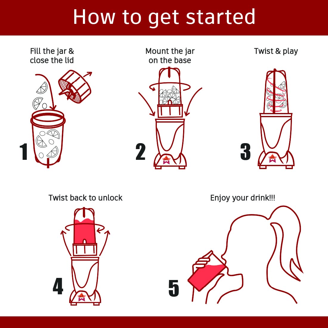 • Hands-Free operation: Best thing is you don’t need to keep your hand on the lid during operation, for the fear of it flying off. This is because Nutri - blend has the unique inverted design that has the lid screwed safely at the bottom with zero chance of the food spattering out