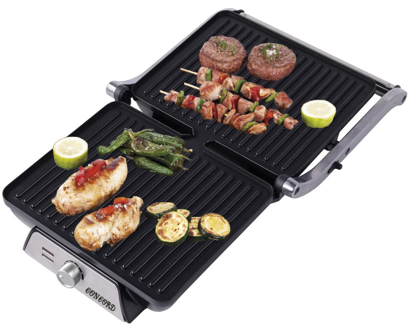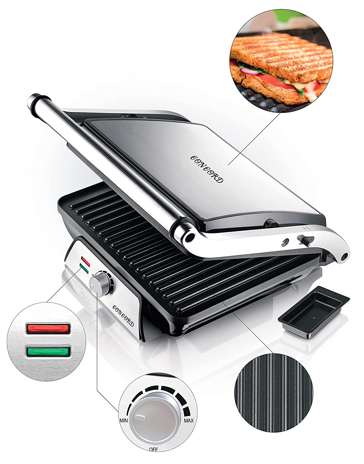 Concord 4 Sandwich Maker/Jumbo Grill/ 2000 Watts | Opens 180° | Temperature Controller | Oil Drip Tray |1.5 Metre Long Cord (Black,Silver)