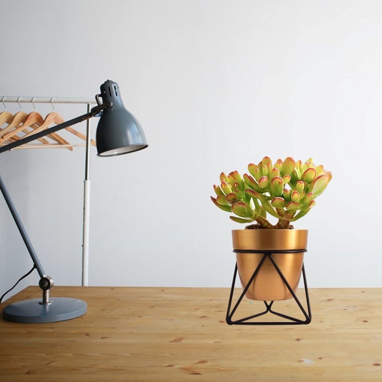 ecofynd 5 inches Noa Metal Planter Pot with Stand, Modern Style Planter Set, Indoor Outdoor Home Item for Garden Plants Flower, Balcony, Living Room, Garden, Bedroom Decor (Pack of 1, PWS013)