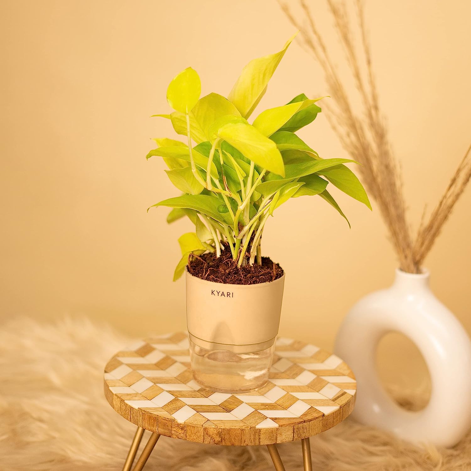 Kyari.co Good Luck Golden Money Plant with Cream Self Watering Indoor Pot for Living Room, Home and Office Decor
