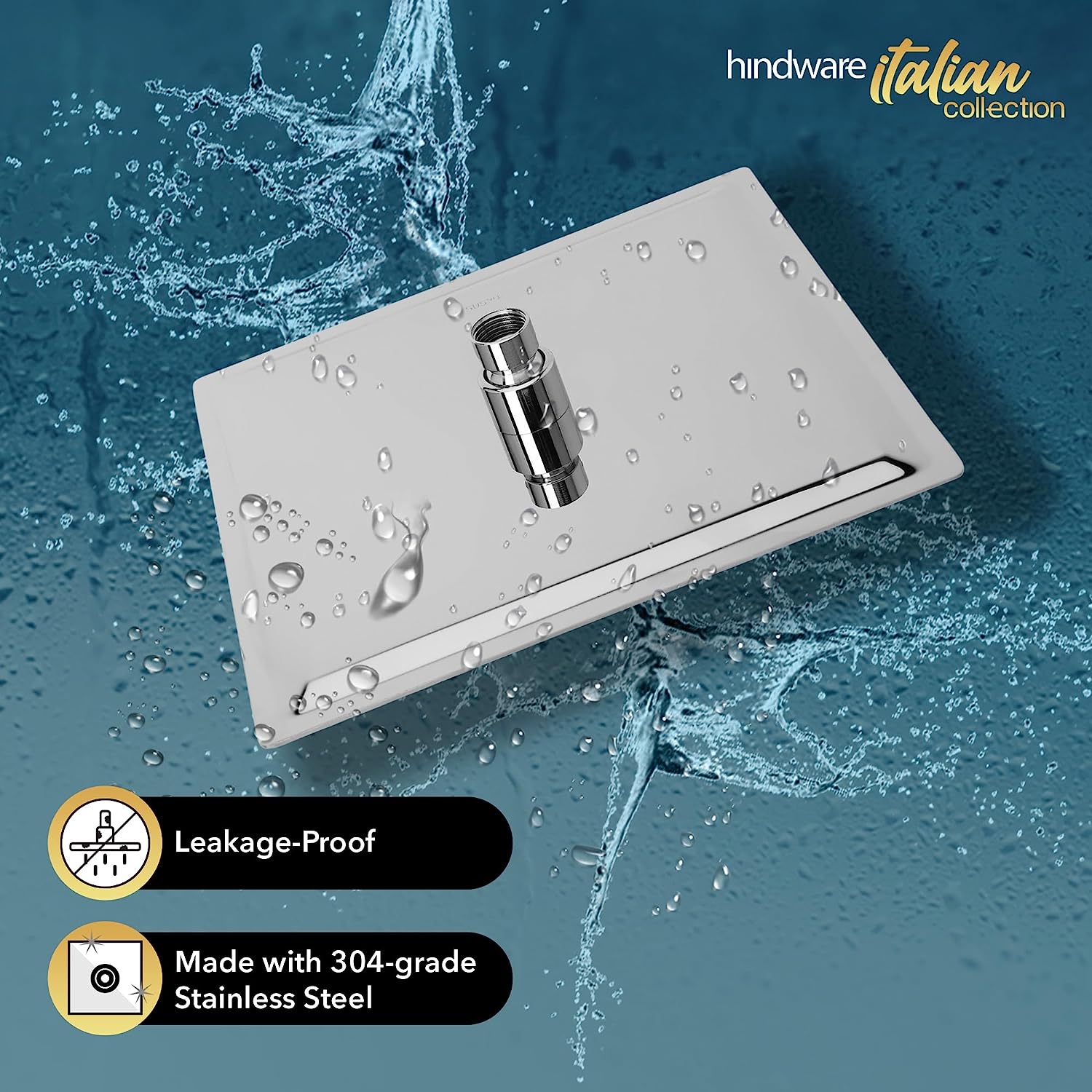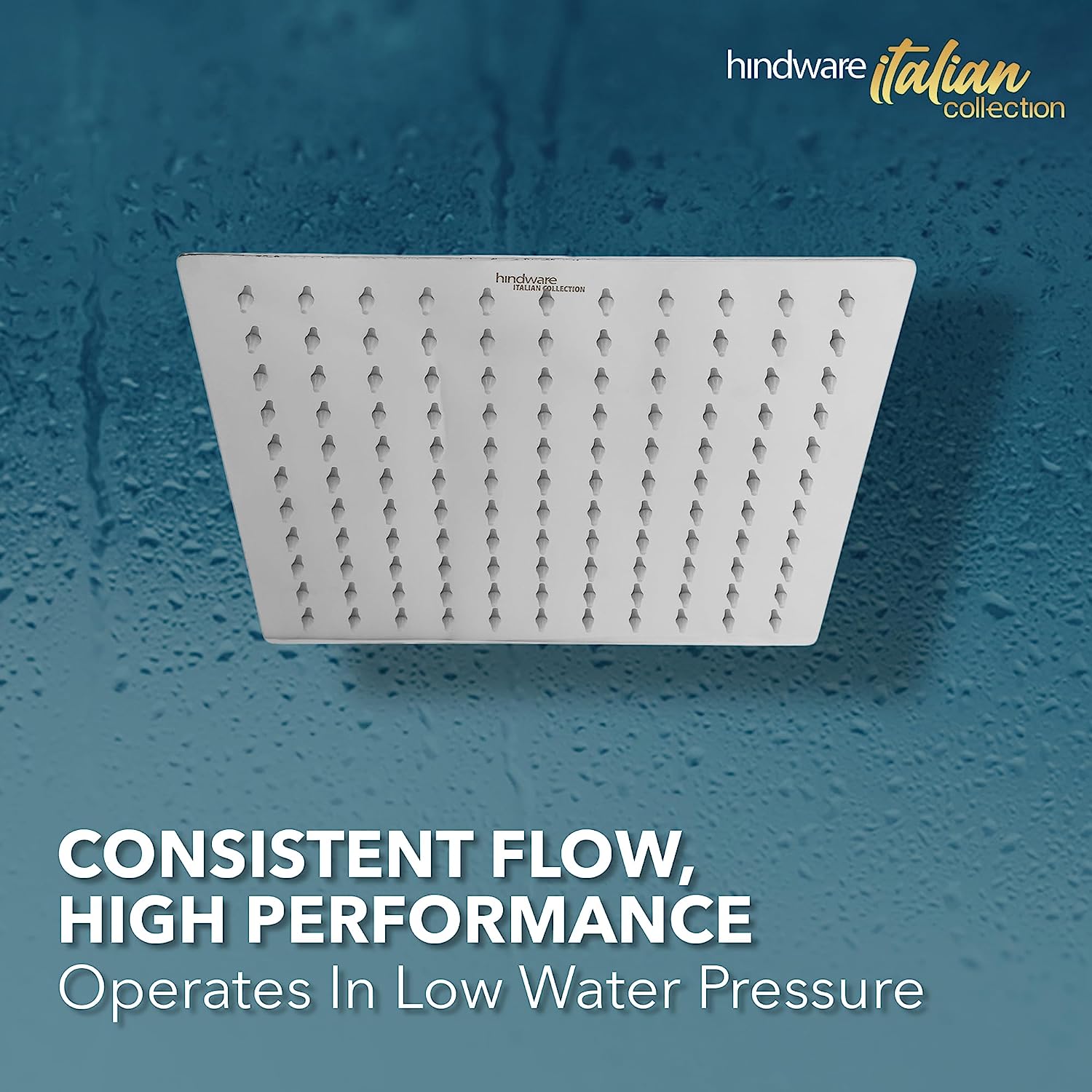 Hindware 250 Mm Stainless Steel Single Flow Ultra Thin Rain Shower Without Arm - Square (Easy Clean Feature)