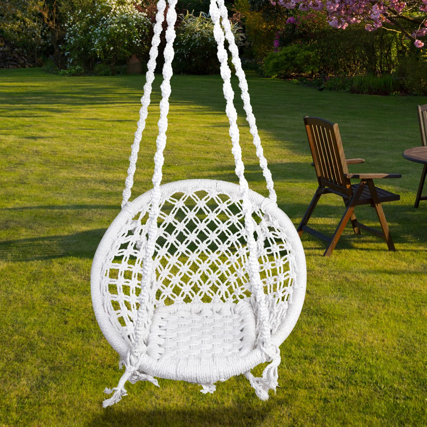 Halder Jute Regular Baby Round Garden Hanging Swing Chair (Cotton, 120*55*45 cm) (White)
