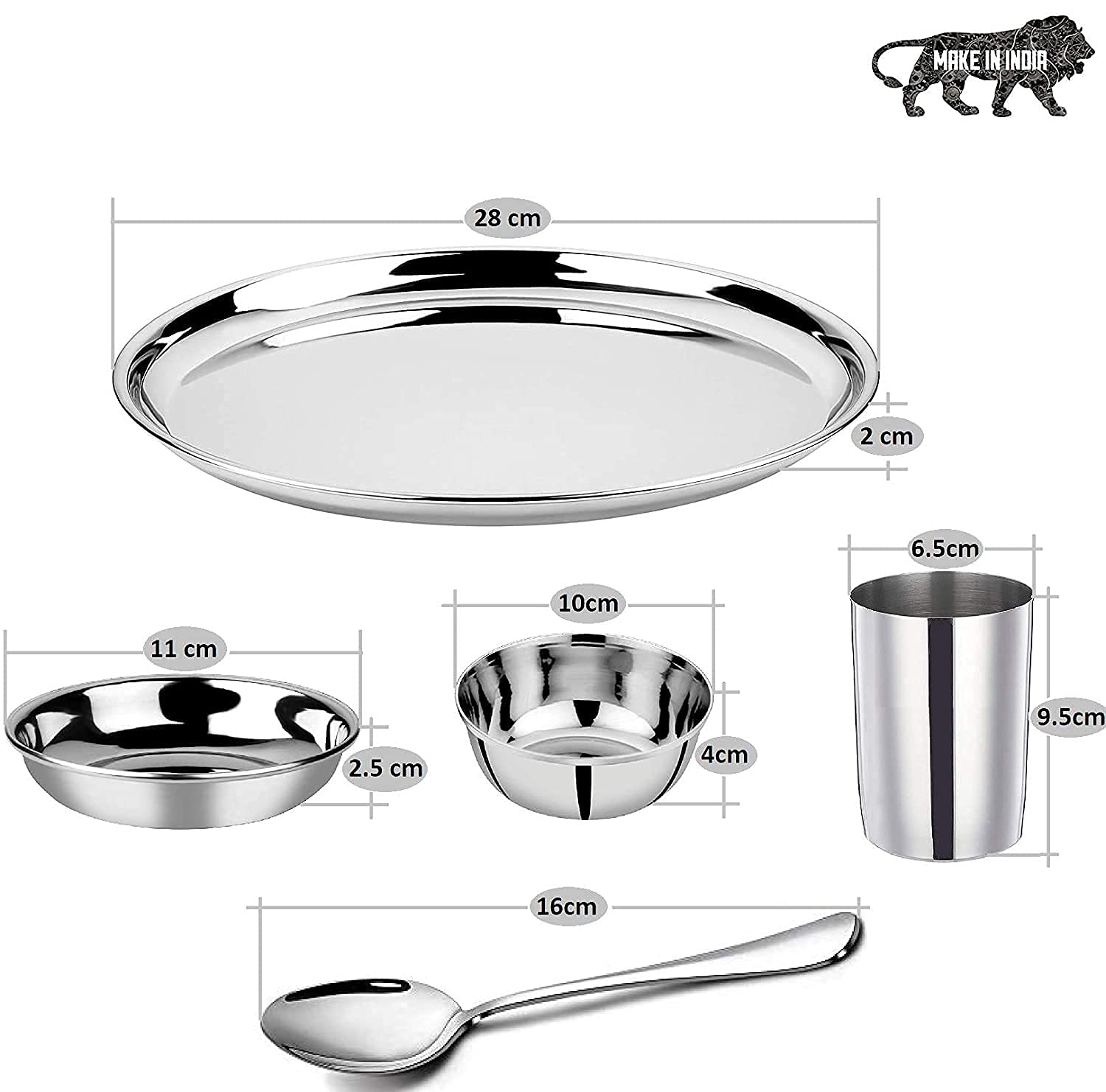 Special Diwali Gift / puja & Use fpr Kitchen Stainless Steel Dinner Set of 24 Pcs 4 Pcs Thali 4 Pcs Half Plate 4 Pcs Small Plate 4 Pcs Bowl 4 Pcs Glass 4 Pcs Spoon