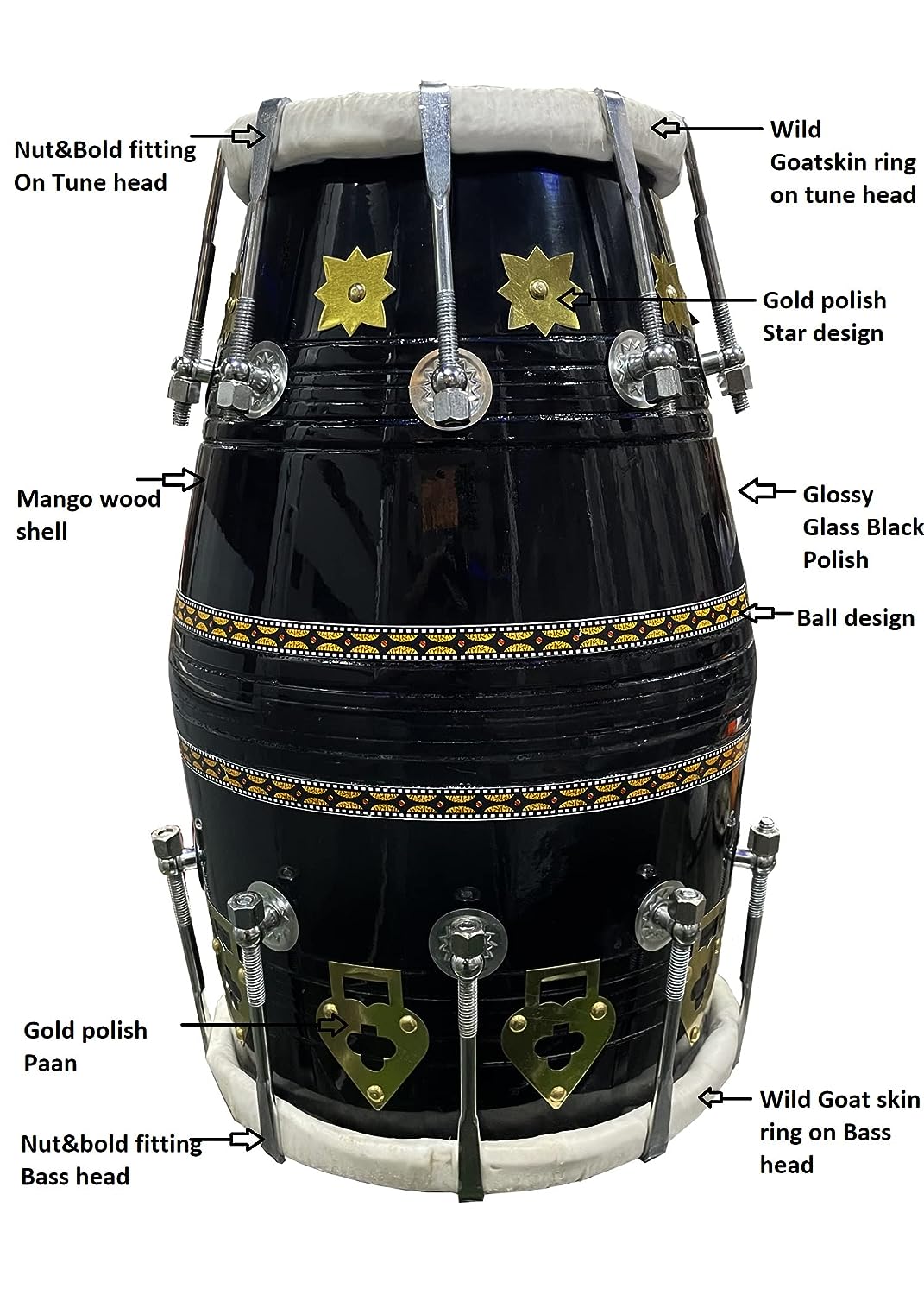 • Glassy Black Dholak