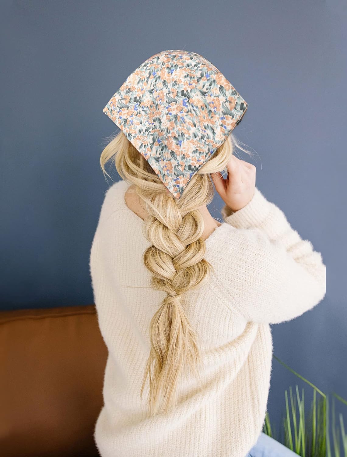 - PRINT FLORAL HEAD KERCHIEF - The print DOUBLE-LAYER head kerchief is pre-tied with elastic ribbon. Each one is printed, the comfortable chiffon fabric with good air permeability does not hurt the hair and fix your hair well