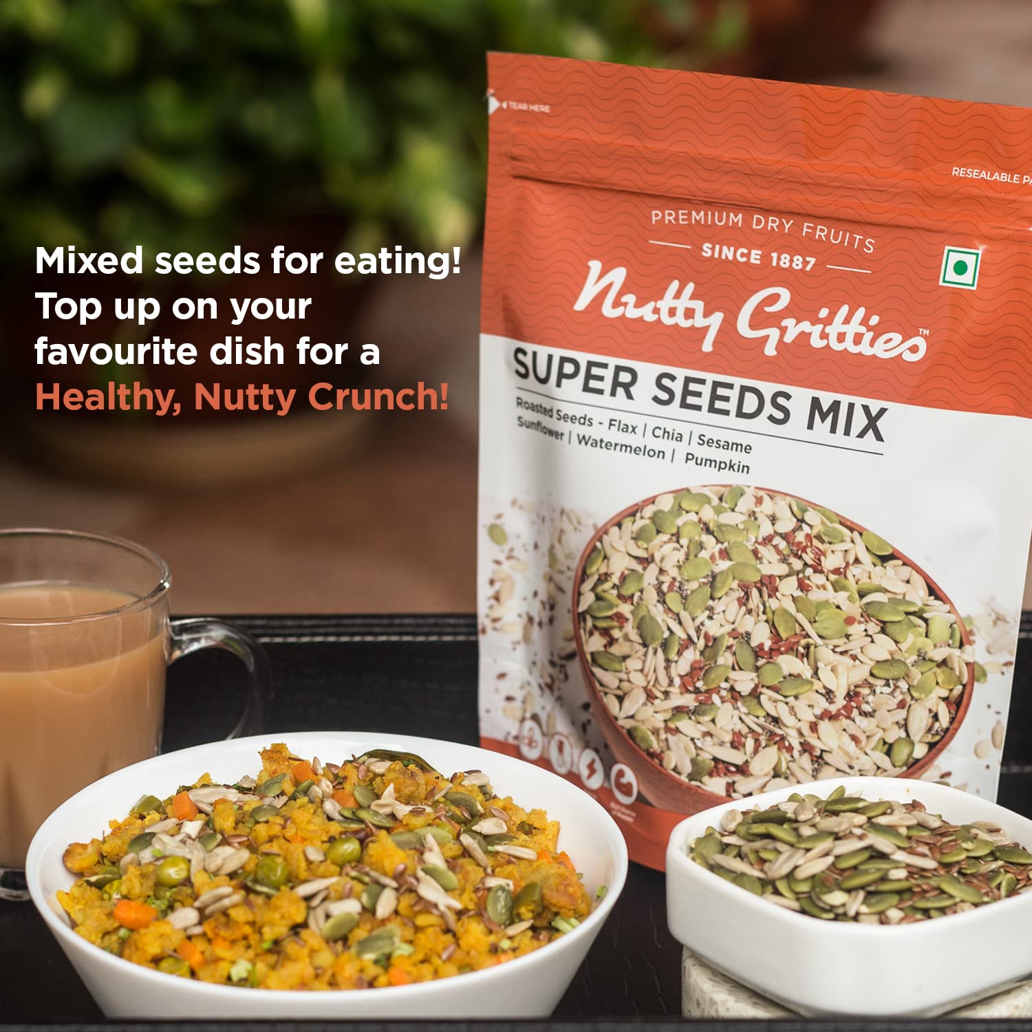 Gritties Premium Super Seed Trail Mix 200g - 6 Super Seed in 1 Mix |Roasted Unsalted Mix Seeds - Flax, Chia, Sesame, Sunflower, Watermelon, Pumpkin Seeds, Mixed Seeds for Eating