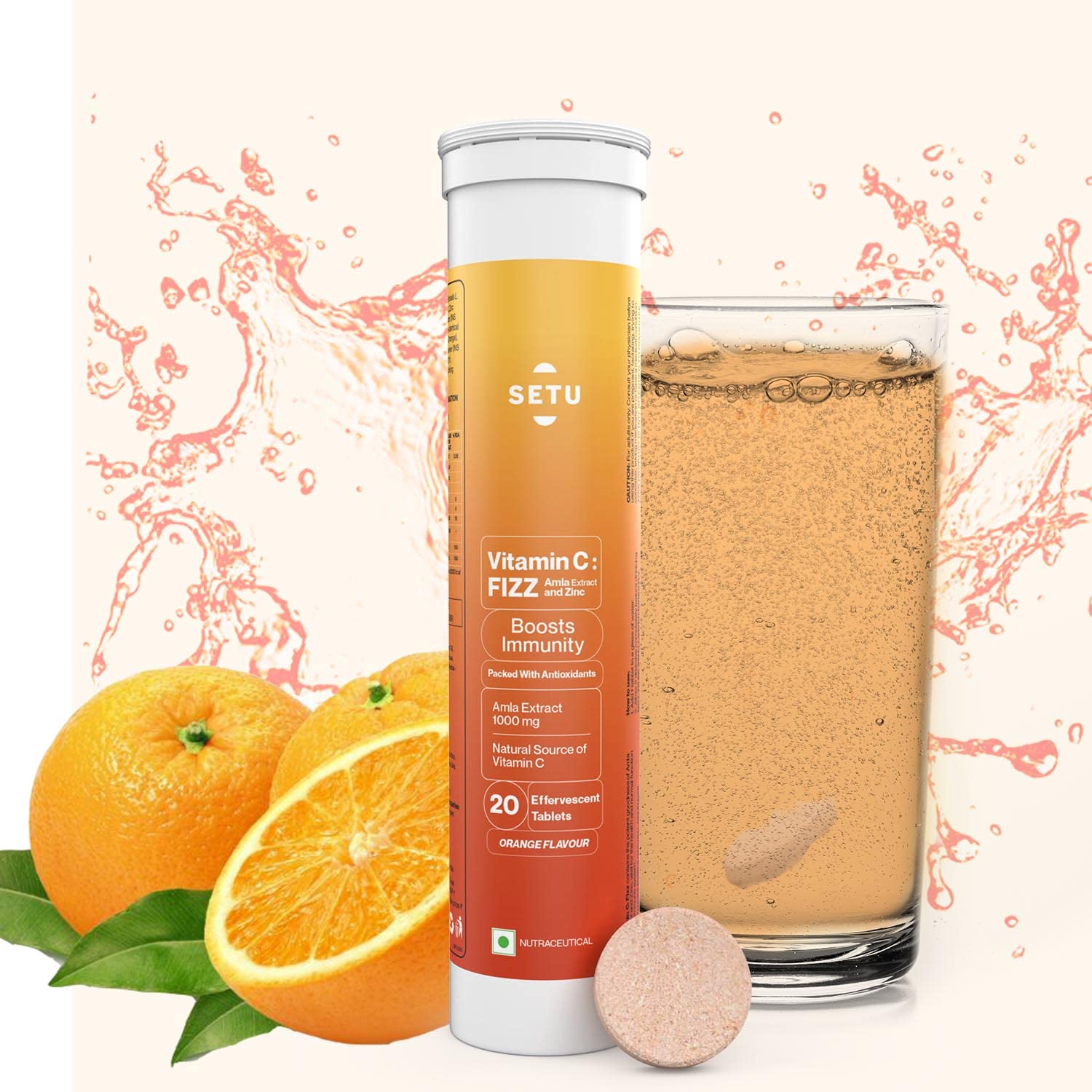 - This delicious vitamin C-based fizzy drink is rich in antioxidants with numerous benefits for your skin and immunity! Unlike traditional, hard-to-swallow multivitamin tablets, these Vitamin C effervescent tablets by Setu Nutrition are your new immunity BFFs.