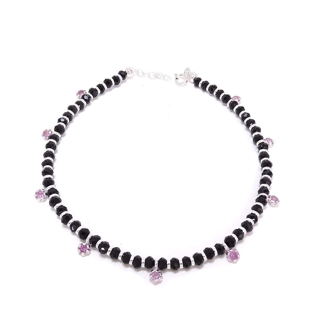 KUKSHYA JEWELLERS 925 Exclusive Nazariya Anklet (Payal) with Black & Silver Beads (Crystal) in 92.5% Sterling Silver for Girls and Women