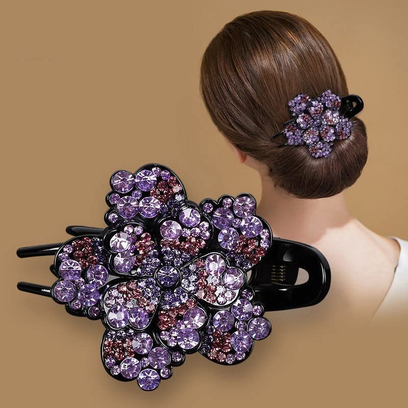 - Rhinestone and faux crystal hair barrettes. Floral Hair Jaw Clip Claw Clip for Women Long Thick Hair Non- Slip Ponytail Holder Strong Hold Hair Grip Catch Barrette Accessories.