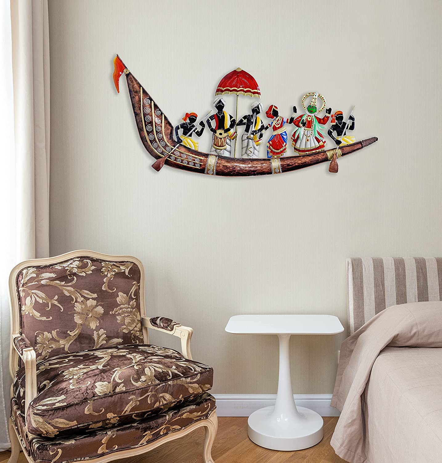 Fastmart Craftowl Emboss Nature Painting Designer Musician On Ship Large Wall Hanging Showpiece Figurine Rajasthani Gift Home Decor 36 x 14 x 1.5 Inch,...