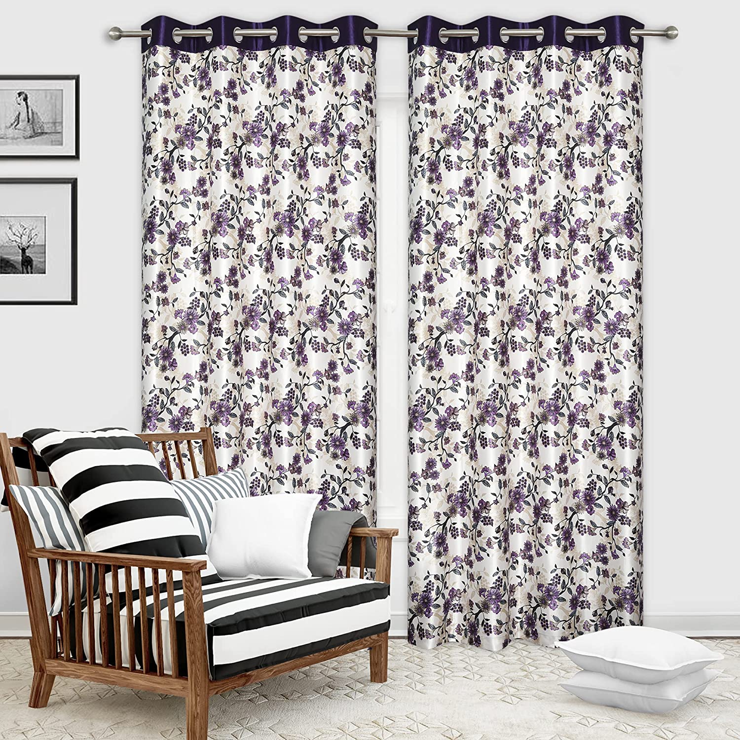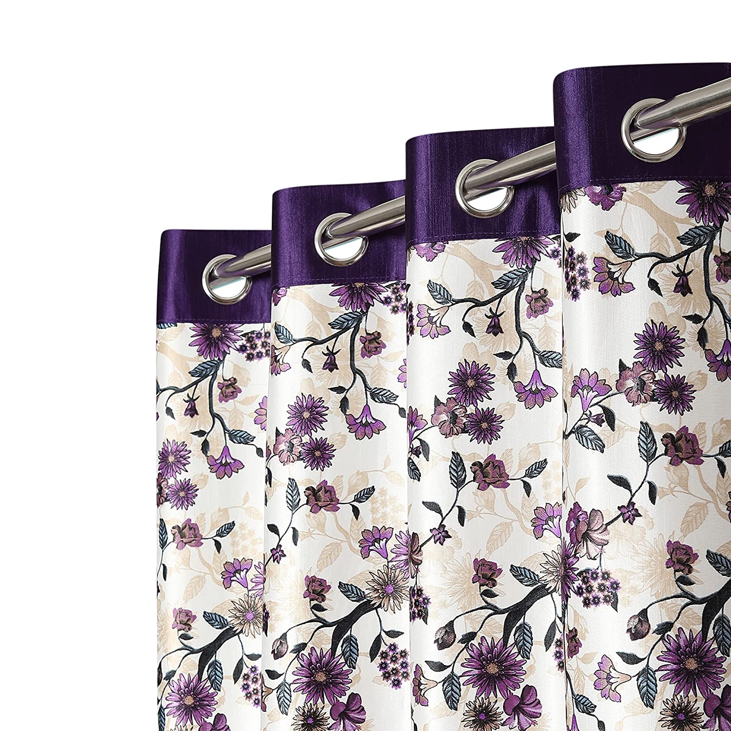 Keshav Fab Heavy Designer 01 Print Eyelet Curtain Print Set of 2 (Long Door 4x9, Purple_PP Joint_Pack of 2)