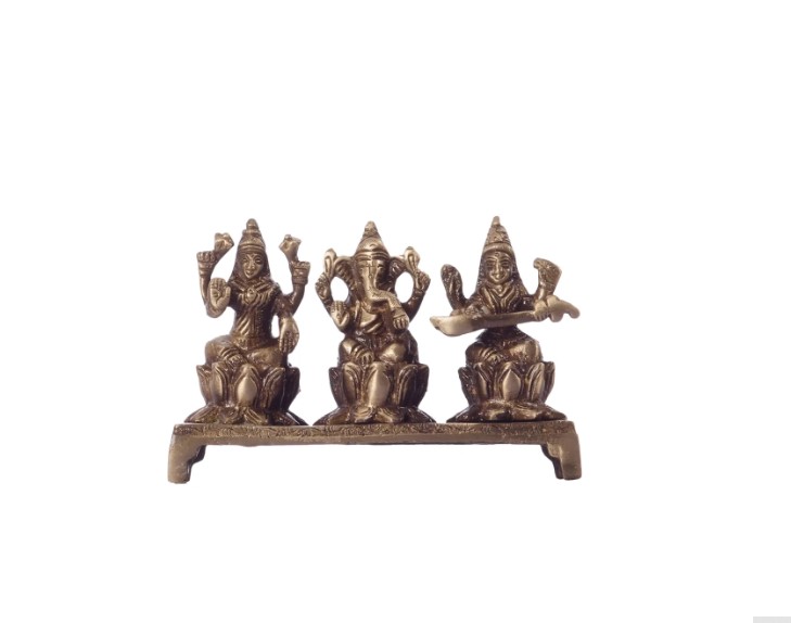 Package Content - One Unit Brass Laxmi Ganesha Saraswati on Lotus Base