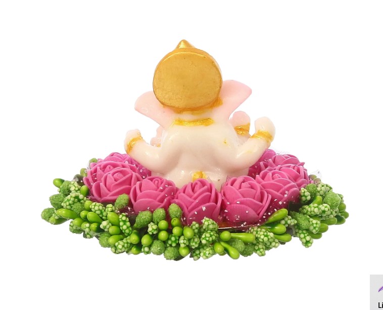 Package Content - One Lord Ganesha Idol on Decorative Handcrafted Plate with Pink Flowers