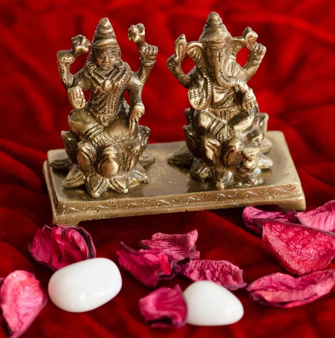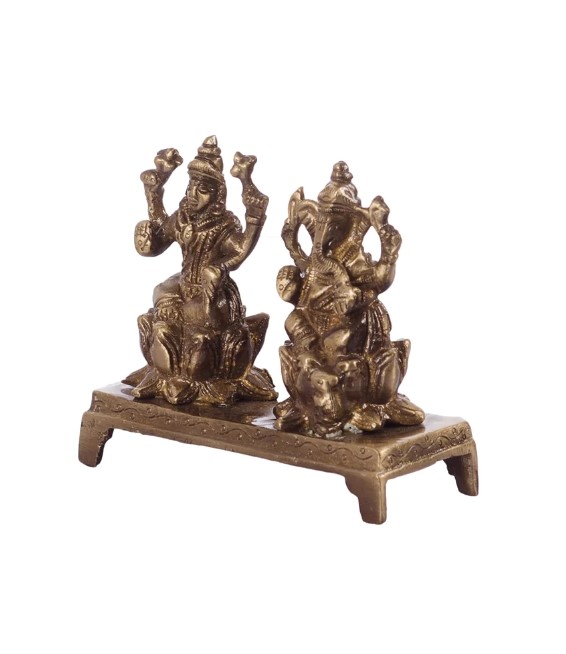 Package Content - One Unit Brass Laxmi Ganesha on Lotus Base