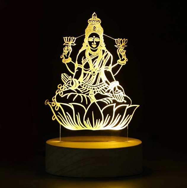 | Package Content - | Goddess Saraswati Design Carved on Acrylic & Wood Base Night Lamp (With Rechargeble Battery) |