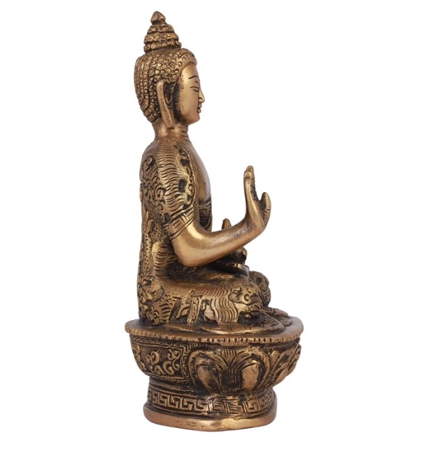 Product Description - Is there anything more serene than the sight of Lord Buddha with his closed lotus eyes and his hand held up in blessing? When you take a look at the meditating buddha figurine that we offer at , you will come to know what we are talking about. Adorning your home place with God's idols and figurines has been there for ages now and still would forever continue to be. Everyone wishes to hold God's idols in their home, which is said to bring positive energy and good vibes. And you can bring the same spirituality to your home with Brass Premium Meditating Buddha Figurine that comes in brown and golden colors. This showpiece is handcrafted intricately by our skilled artisans at the dwelling of Faverdeal using various inherited methods and is also a great gifting option for your family and friends.