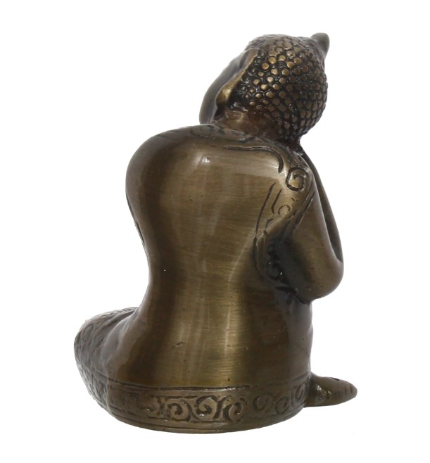 Package Content - One Metallic Antique Color Metal Resting Buddha on Knee