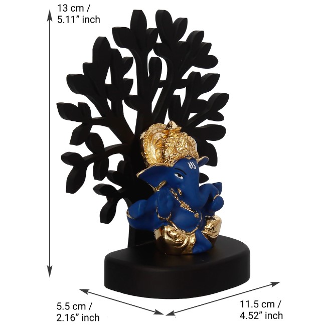 Product Description - Every Car dashboard, office desk, home temple, and work table is adorned with a Lord Ganesha figurine as it is said that he brings prosperity. Our golden, blue & black polyresin Lord Ganesha murti with the wooden tree for home, office & car dashboard is the best for you to have for your home, office, or computer table as well. This also stands as a great gifting option for your family as well as friends. Each showpiece is handcrafted using various ancient techniques by the artisans at the house of and is also a great gifting option for your loved ones. Our showpieces have been diligently handcrafted by proficient artisans of who are on a mission to take Indian Art and Culture into each home of India.