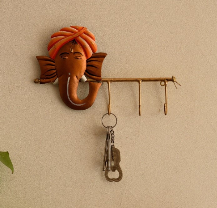 Product Description - Make your home look beautiful by hanging your keys on this Wrought Iron Lord Ganesha Key Holder. The key knobs have been carefully designed to hold your keys. This key holder can be hung at any place in your house to keep keys secured and can also be used as a wall decoration piece. It serves as a great gift, especially around religious celebrations and festivities. Each Key Holder is diligently handcrafted by skilled artisans from the house of using various traditional techniques.