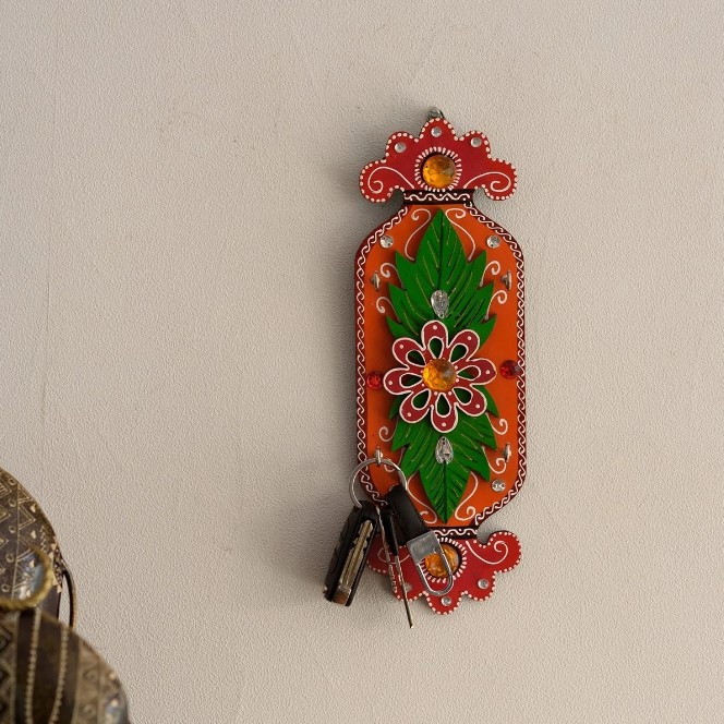 Product Description - Place your keys on this beautiful keyholder handcrafted by artisans of . The key holder has 4 hooks for your house, car, garage and other keys. The key knobs have been carefully designed to hold your keys. This key holder can be hung at any place in your house to keep keys secured and can also be used as a wall decoration piece. It serves as a great gift, especially around religious celebrations and festivities. Each Key Holder is diligently handcrafted by skilled artisans from the house of using various traditional techniques.