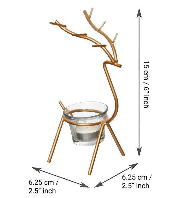 Product Description - Glorify your celebrations with gold deer shape metal tea light candle holder or diya that help you make your celebrations fun and memorable. These tea light holders will not fail to leave a lasting impression on your guest. Made from metal this wonderful piece of art will surely accentuate your home decor. It serves as a great gift, especially around religious celebrations and festivities. Each tea light holder is diligently handcrafted by skilled artisans from the house of using various traditional techniques.