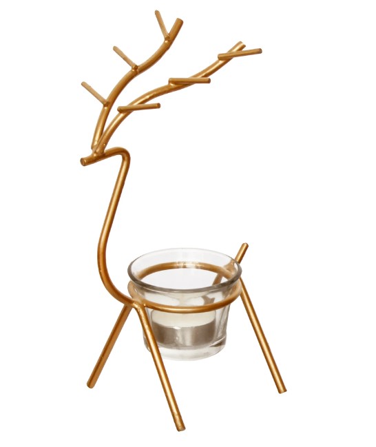 Package Content - One Deer Shape Decorative Handcrafted Metal Golden Tea Light Holder