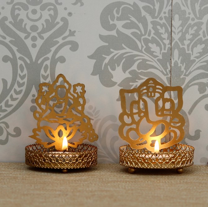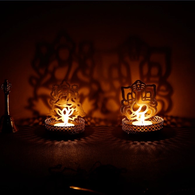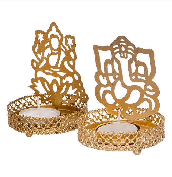 Package Content - One Lord Ganesha and Laxmi Shadow Tea Light Holder