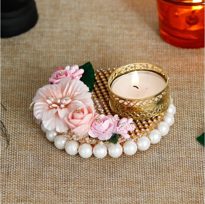 Package Content - One Decorative Handcrafted Pink Floral Tea Light Holder