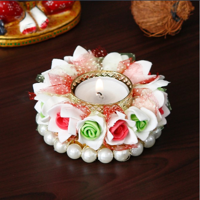 Product Description - Decorative tea light holders are in trend especially the one's that have unique designs stand as a great decor item during the festivals. They also help you decorate your home as well as the office space and enhances your festive decoration.Designer Handcrafted Floral Tea Light Holder is the best for you to get your hands on. You can also gift this to your friends and family on festivals or other auspicious occasions. Diligently handcrafted using various ancient techniques by the artisans at , this is the most unique and decorative tea light holder that you can get.