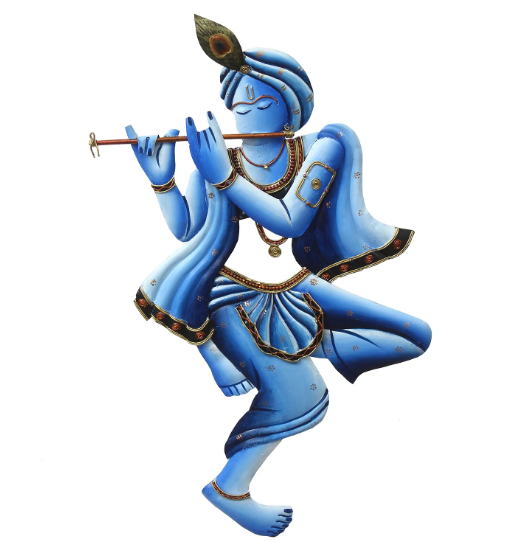 Package Content - One Blue Lord Krishna Playing Flute Handcrafted Decorative Iron Wall Hanging