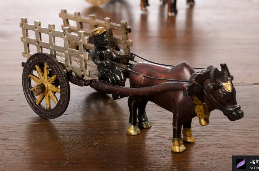 Package Content - One Piece Brass Antique Finish Open Bullock Cart