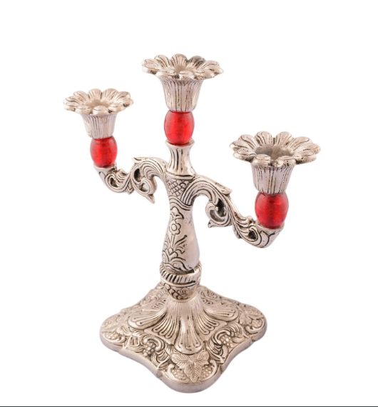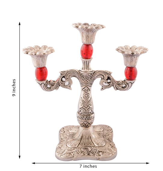 Product Description - Candle stands have been in vogue for ages now and continue to be. And at , you can discover our white metal silver & red 3-candle stand that makes a great home decor item. Decorate your home with our candle stands which are a great home decor item as well as a great gift. Each stand is diligently handcrafted by our professional artists by utilizing various inherited techniques. This stand serves as a great gift option for your friends and family when it comes to festival gifting. Adorn your home with this candle stand of ours and stand out when it comes to your home interior as it will give a touch of royalty to your home.