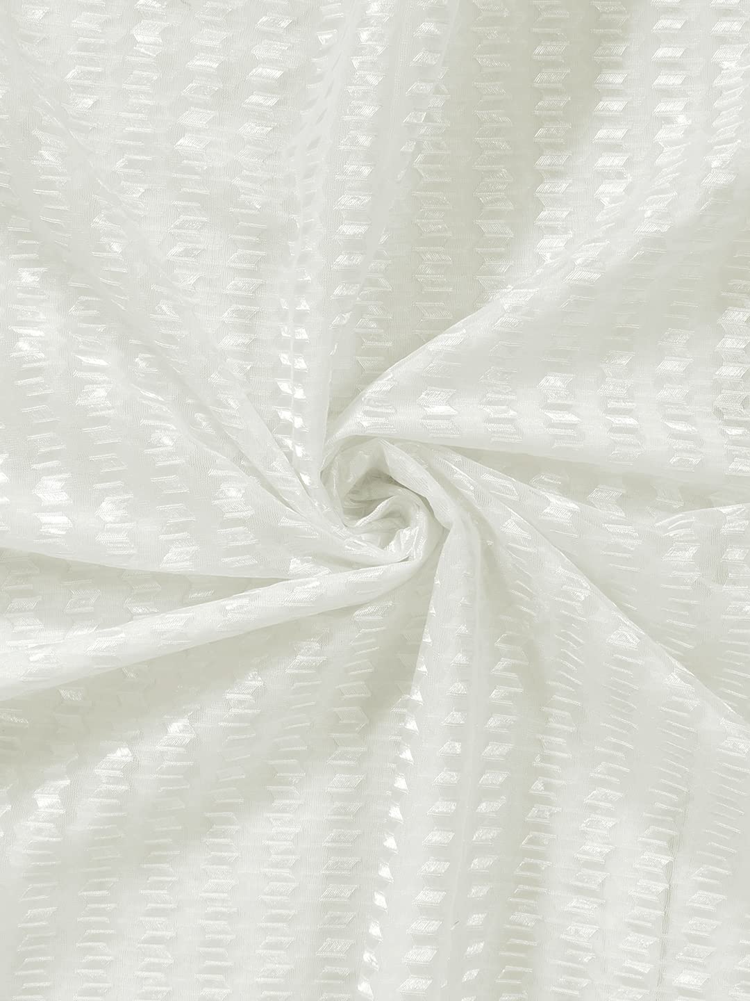 Sheer Window Curtains Linen Look Semi Transparent Voile Grommet Zic Zac Curtains for Living, Dining Room White (Set of 2, 5 Feet, White)