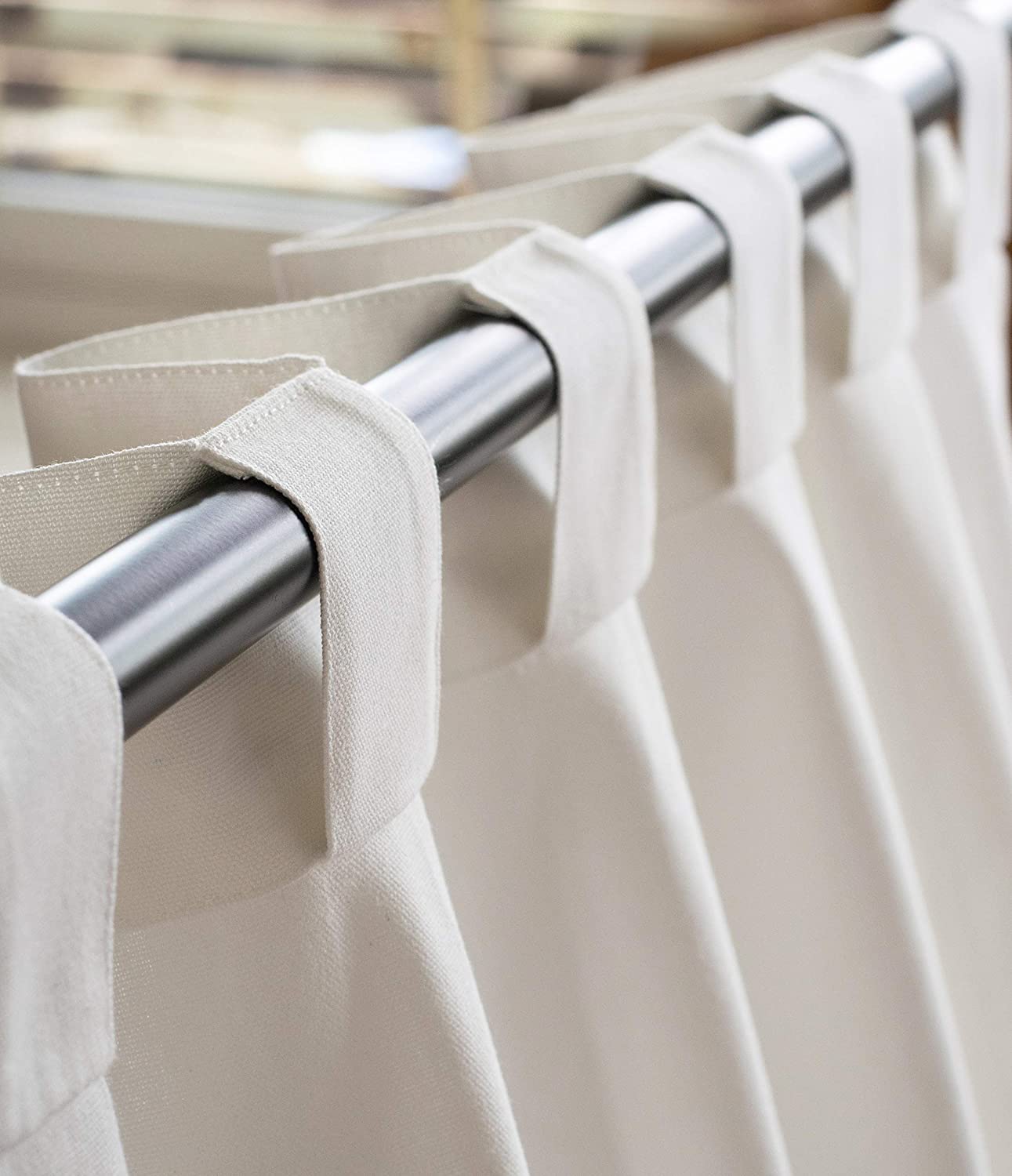 • ELEGANT LOOPS: No more hassle of rings/eyelets rusting or coming off with washing! Our fabric back loops are a breeze to maintain. Plus, they provide an elegant, sophisticated look by hiding your curtain rod from view. The loops are large enough and will slide smoothly on any standard curtain rod.