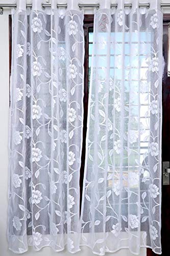 2 Pieces Fancy Sparkling Heavy Quality White Sheer Strip Semi-Transparent Flowers Net Curtains - Size - Door - 4 x 7 feet (EHSPR746_74)