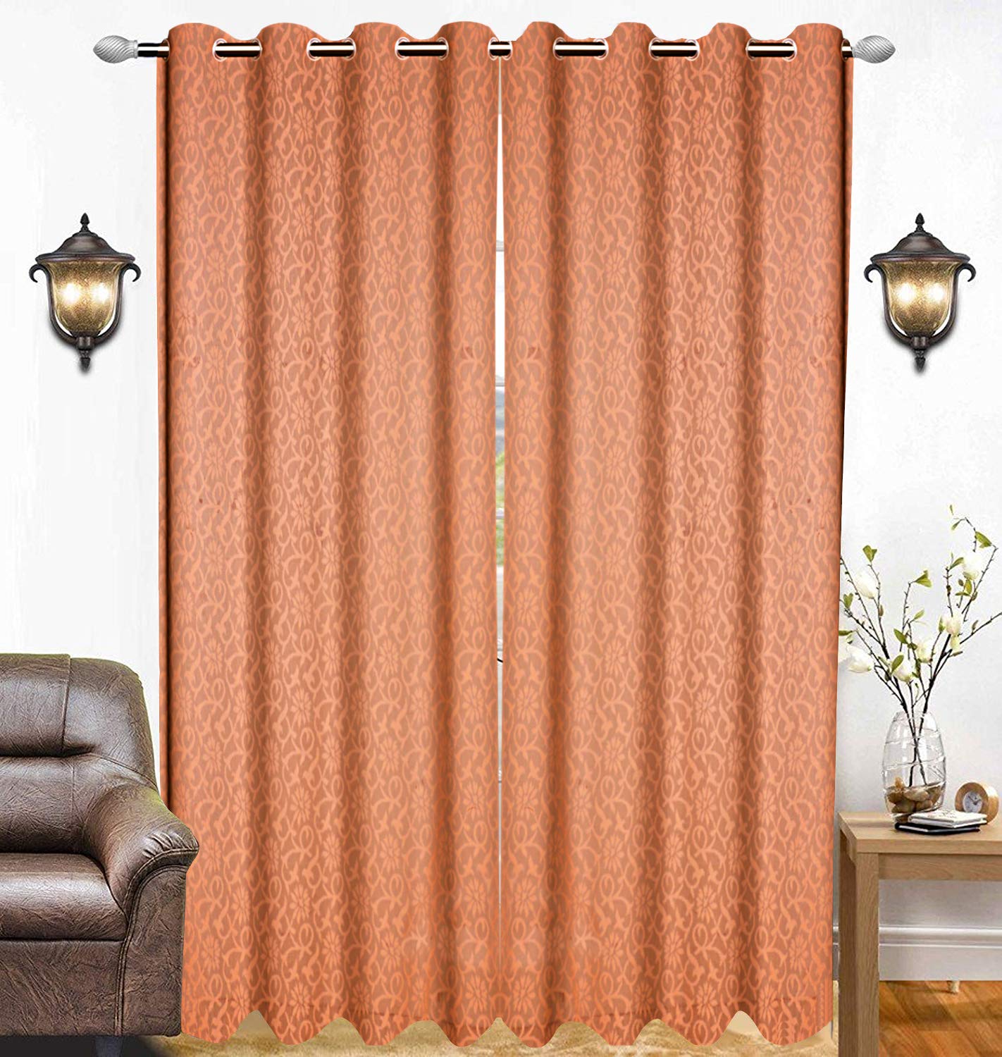 Cotton 1 Pieces 7 Feet Eyelet Door Curtain (Peach) -CTKTC028595