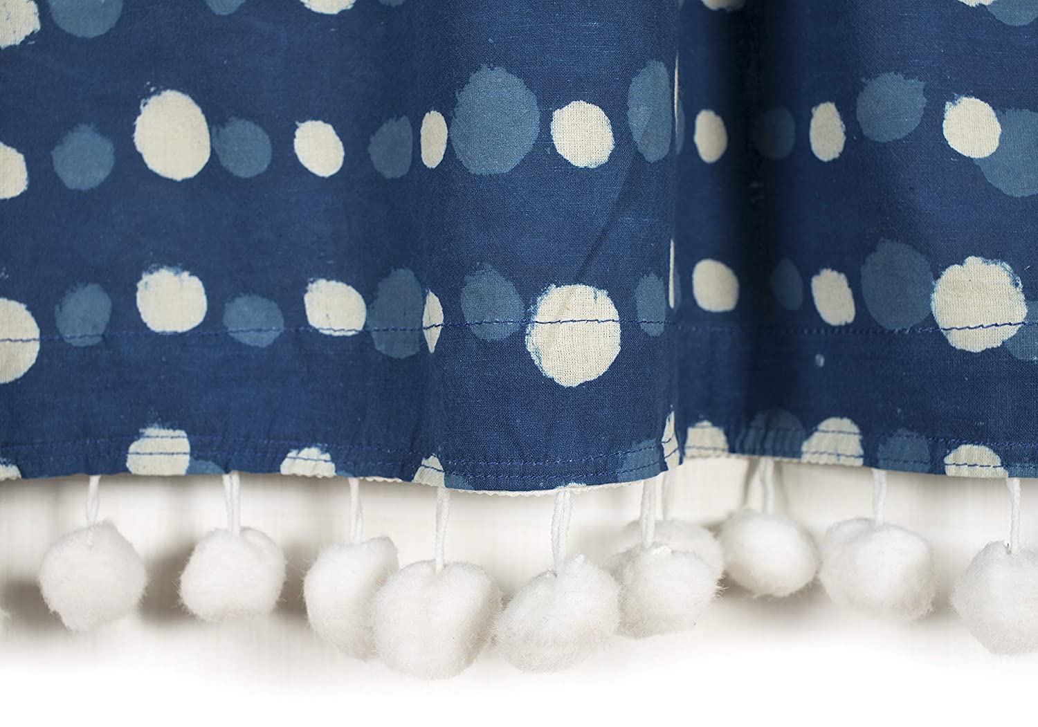 • Color - Indigo Blue & White, Pattern - Polka Dot, Curtain has Decor Pom Pom Lace.
