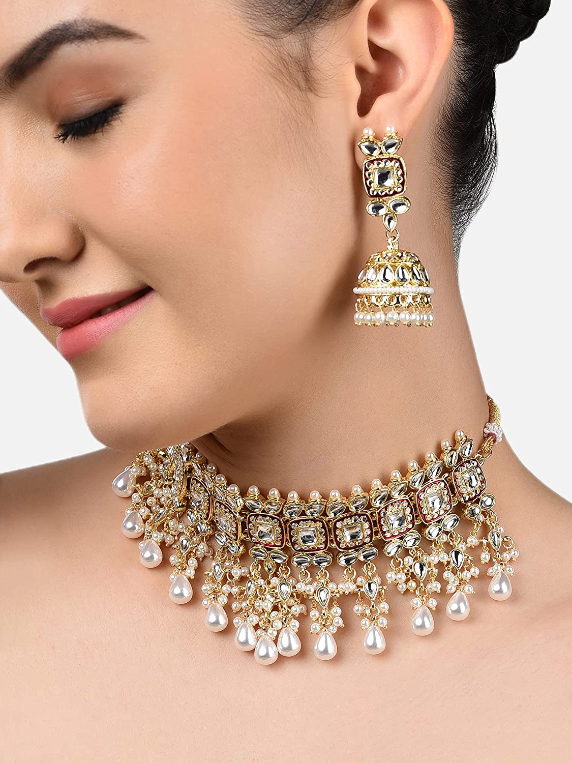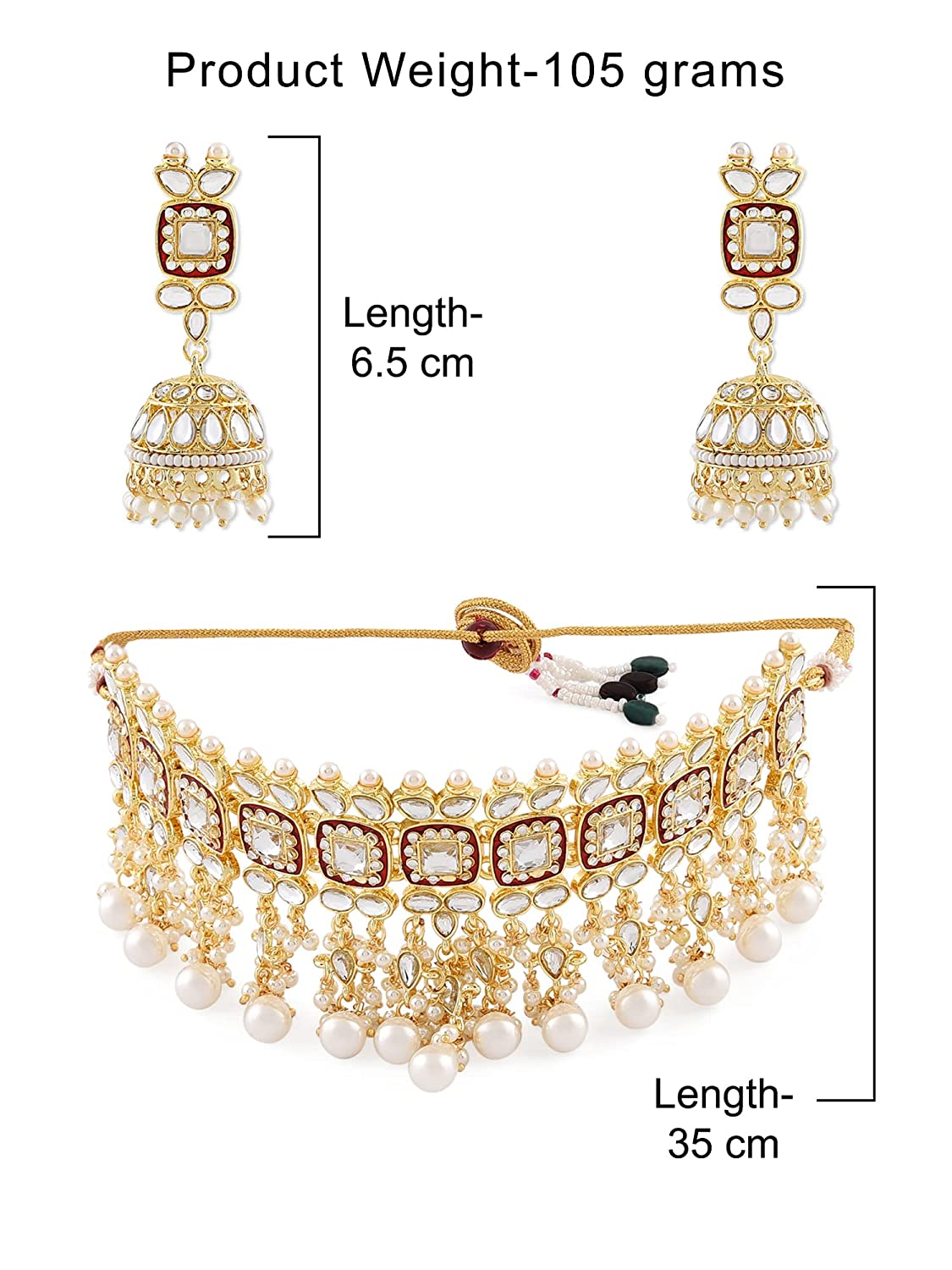 - Color: Red, Material: Alloy, Plating: 22K Yellow Gold, Stone: Kundan & Pearls