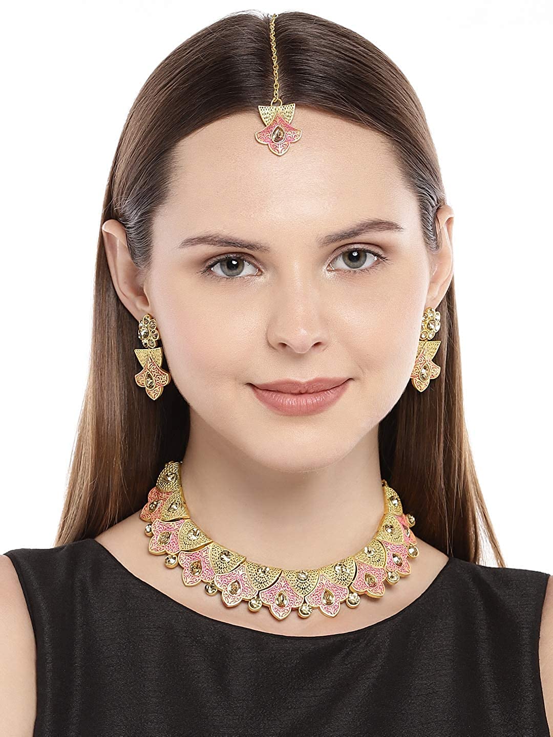 - Graceful and flawless: give yourself that beautiful look and make others jealous with our traditional necklace set. It has a high quality imitation kundan stone along with unique pearl look a like which gives it an edge over other earrings. This is a one of a kind design which will go with all types of dresses